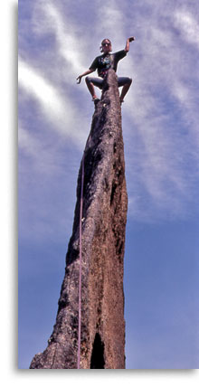 In June 2004 we added the Olympus C-5060 Wide Zoom to our growing collection of digital cameras. The camera's ED lens (27mm thru 110mm equivalent) and 5.1 megapixel resolution produce much better images. Although not as tiny as our pocket-sized digital cameras, this compact camera featured great macro images and a high quality accessory lens that allowed wide-angle photos to 20mm equivalent. This wide focal length is essential for capturing climbers in the climbing environment. This camera was the turning point after which we rarely carried a film camera.