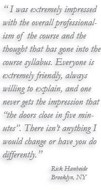 Unless noted otherwise, programs meet at 9 a.m. and conclude at approximately 5 p.m. each day. We provide your lunch each day, however breakfast, dinner and accommodations are not included. When you register for a program we can help you arrange for Accommodations to suit your preferences.