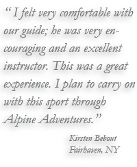 Only after a guide and client get to know one another does it make sense for them to plan, and undertake, demanding objectives so, at first, we limit our choices to objectives well within your estimated ability. After climbing with us for a day or two you will have a clear picture of our expectations and we will have a clear picture of your abilities.