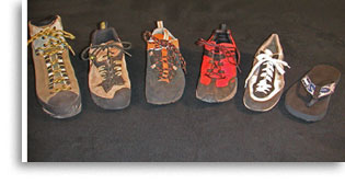 Rock shoes are the single most useful piece of equipment a climber can own. As such, they are the first, and most important, equipment purchase a climber should make. We have prepared this information because far too many climbers coming to us with new rock shoes have shoes that are ill-fitted, or inappropriate, for their needs. We always feel awkward telling people that the only solution to their shoe dilemma is another (expensive!) pair of shoes; so read carefully. We suggest you take this information with you and show it to the salesperson. A seemingly-endless stream of poor advice has been published in the rock climbing magazines and, if the sales staff where you shop is using this inappropriate advice to aid in the fitting process, you’ll be very unhappy with your shoes; we guarantee it. The advice below is based upon fitting hundreds of pairs of rock shoes and (most importantly) climbing extensively with the owners immediately afterward. Very few sales people have this kind of experience.