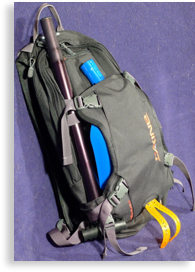 Most day packs will work, but there are many packs available with very nice features specifically for skiing. Good ski packs will not interfere with movement while skiing, have a convenient system for carrying skis, avalanche gear and other equipment, and have a way of easily separating wet and dry clothing. Hydration systems are convenient but may freeze in really cold conditions. 25 to 30 liters is big enough to carry extra layers, a thermos, avalanche gear, personal accessories and lunch with a bit of room to spare. Some ski packs incorporate avalanche airbags or Avalungs and, while we do not find these features useful in the Adirondacks, skiing in areas with frequent avalanches may justify their high cost and weight. You might also want to get a small fanny pack to carry just the essentials on a short ski.