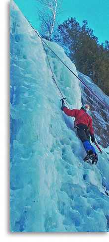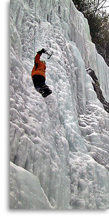 Ice is constantly changing and it is this fact, along with the difficulty of predicting how it will change, that often gets rock climbers into trouble. Rock changes very little from day to day, season to season, and even over hundreds of years. Once in a while a holds breaks or something falls off but not often. Ice climbs usually change at least a bit each day and if you don’t expect and plan for it you will be surprised sometimes unpleasantly. Often climbs change dramatically during a single day. On longer climbs, conditions sometimes change significantly while you climb. It is for this reason that we don't attempt to report conditions on a specific climb. More than once, we have arrived at the base of a route we have climbed on many previous occasions, only to find it in very different shape than we expected. The key to success lies not in being able to predict conditions but rather in knowing how to deal with the conditions you find.