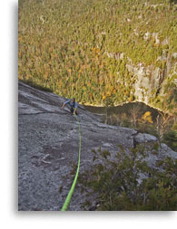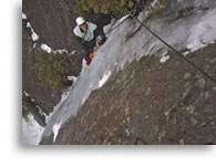Toward the end of October colder temperatures, shorter days and the end of foliage season make rock climbing less attractive. Before, and after, the rock season there are usually a few scattered and unpredictable days of enjoyable climbing. We have climbed warm, dry rock in the Adirondacks during all 12 months of the year, but it has taken almost twenty years to find a warm day in every month! During the winter, rock climbing is reincarnated into mixed climbing really a variation on ice climbing.